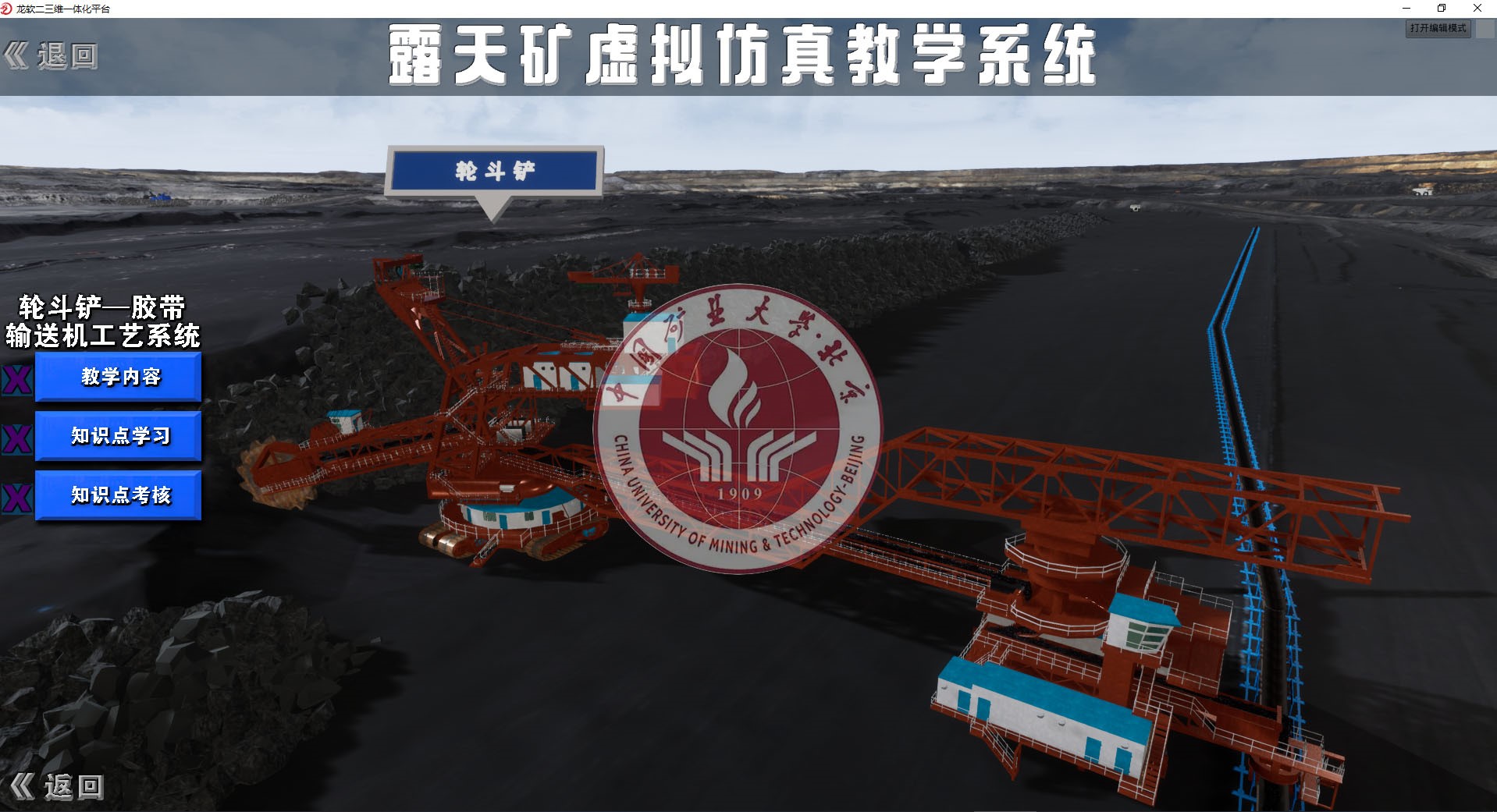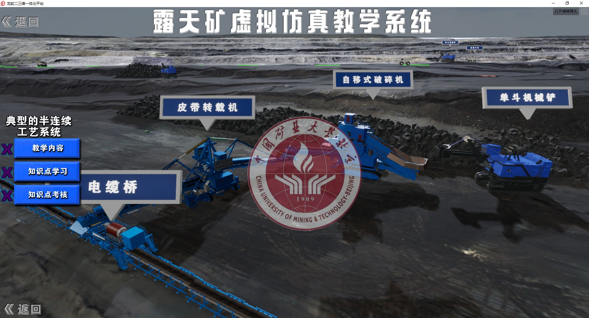 2019年,在“采矿虚拟仿真教学实验系统”的基础上,侯运炳教授与威廉希尔500欧洲指数开发团队攻坚克难,以综采放顶煤开采方法与工艺为教学实验目的并结合实际教学大纲,完成了线上教学系统 “综采放顶煤虚拟仿真教学系统”的开发工作,该项目在实际教学中得到广泛应用,2020年获批首批国家级虚拟仿真实验教学一流课程。